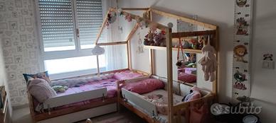 Casetta Montessori con mensola con due letti uno misure standard 80*190 altro di misure culla vendo compresi materassi nuovi in Memory.