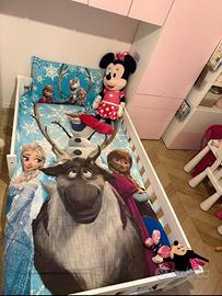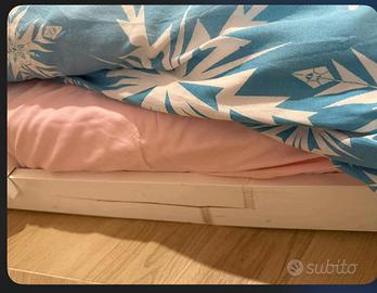 Vendo letto originale Nabè con materasso incluso per bambini da 1 anno di eta usato solo per 3 mesi. Colore bianco Unico difetto da fase di montaggio quello in foto. Prezzo nuovo 430. CON CAMERETTA MODELLO SMASTAD IKEA COMPOSTA COME IN FOTO PIU CASSETTIERA PREZZO TOTALE 400.