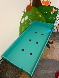 Misura 174x74 compreso di materasso nuovo, coprimaterasso su misura e cuscino per bambini. Tutto nuovo.