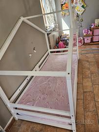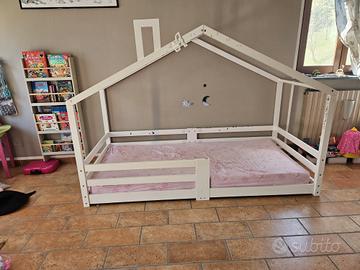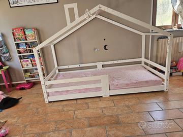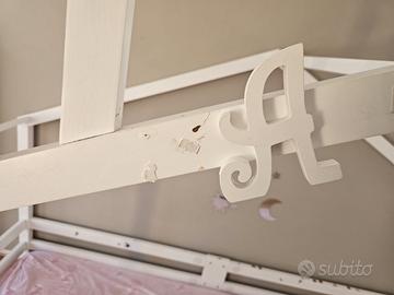 letto montessori bianco con doghe inclusa ,senza materasso ( materasso non incluso ) , sticker che si tolgono facilmente. letto e' gia smontato pronto al ritiro .