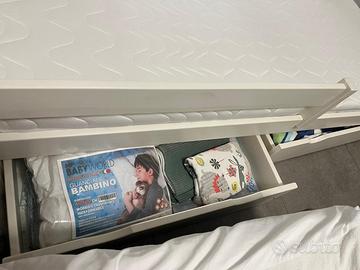 Letto montessoriano adatto all’autonomia della salita e discesa da parte del bambino. Costruito con legno e vernici ecologiche, completo di sbarra anti caduta, 2 cassetti estraibili molto capienti e materasso nuovo.