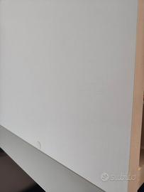 Vendo cameretta Moretti Compact di colore grigio chiaro e bianco effetto legno con scaletta. È dotata di letto estraibile e letto inferiore con ruote. Luce da lettura touch integrata. Rete estraibile sollevamento automatico. Dimensioni: 212Lx174Hx98P