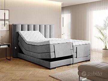 - PREZZO VALIDO FINO AL 22 APRILE 2026! - Letto motorizzato matrimoniale boxspring Utrecht, un nuovissimo modello della nostra collezione, insieme al modello Manhattan. Il sistema di riposo del letto Utrecht è senza dubbio tra i migliori e confortevoli presenti sul mercato e questo dipende dalla sua struttura e dalla sua conformazione: i due materassi singoli sfoderabili a molle indipendenti, sopra i quali troviamo i due top singoli sfoderabili, poggiano su altrettanti materassi singoli a molle tradizionali fissi, che hanno la medesima funzione delle reti in altri letti in commercio. Questa sovrapposizione dei due materassi fà sì che il materasso a molle indipendenti possa risultare estremamente ricettivo alle sollecitazioni ed agli impulsi che gli vengono trasmessi: per i numerosi elementi della sua struttura, l’altezza complessiva di dove si dorme è di ben 67 cm. Oltre a questo aspetto, il letto motorizzato boxspring Utrecht è dotato di due meccanismi elettrici (uno per ogni piazza) costituiti da 4 sezioni: uno per spalle e testa, uno per il bacino, uno per le gambe e l’altro per i piedi. I due meccanismi sono indipendenti ed ogni piazza è dotata del suo telecomando. La dotazione del nostro letto motorizzato Utrecht è davvero completa, sia per il livello di qualità del riposo sia per quanto riguarda la funzione di aiuto per alzarsi e coricarsi ed è indicato per ogni persona, in particolare per persone con difficoltà nelle funzioni motorie. Per finire, la testata del modello Utrecht è di dimensioni importanti (H 130 cm) ed è caratterizzata da motivi lineari verticali che lo rendono un letto moderno e versatile. Il suo peso complessivo è di 205 kg nella versione di rete 160×200 cm e di 216 kg nella versione di rete 180×200 cm. Prodotto funzionale, di qualità ad un ottimo prezzo! EXCELLENT LINE – GARANZIA DI 2 ANNI COME DA NORMATIVA EUROPEA STRUTTURE INTERNE, RIVESTIMENTI E MOTORI MOLTO RESISTENTI PRODOTTO ROBUSTISSIMO E DI ALTA QUALITA’!