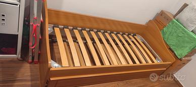 lettini in legno di 190 cm, quello di sotto ha i piedi a molla e tirato su diventa anche matrimoniale.