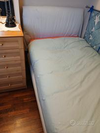 letto Flou singolo cm 90x200 modello nathalie con piedini in legno, pagliericcio Flou, materasso . testile 9 imbottito tessuto grigio . usato ma in buono stato.