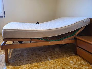 Letto 1 piazza e mezza , noce chiara, ortopedico elettrico con telecomando, perfettamente funzionante posizione testa e gambe con materasso originale. Come nuovo . Senza testiera. Smontaggio, imballaggio e ritiro a cura dell’acquirente