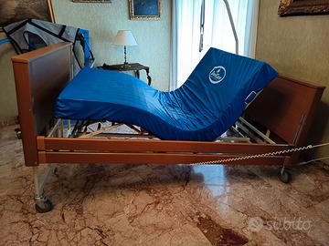 Grazie al telecomando, si può regolare molto bene l'alzata del busto e delle gambe, sia insieme sia separatamente con notevole confort . Le sponde anticaduta garantiscono maggior sicurezza. Inoltre, è munito di asta per aiutarsi nei sollevamenti . La possibilità di regolare l'altezza del letto, rispetto al livello del pavimento, facilita il compito di chi assiste riducendo di molto eventuali sforzi. Inoltre presenta un elegante rivestimento in legno che si integra con l'arredamento domiciliare. Dotato di 4 ruote e sistema frenante