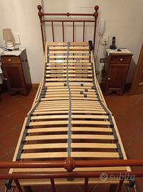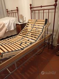 letto ortopedico elettrico ottime condizioni con materasso incluso. Il letto, con rete a doghe, ha 3 snodi, è perfettamente funzionante e silenzioso, da comando manuale come da foto. Larghezza: 80cm, lunghezza: uno 200cm e l'altro 196cm 2 disponibili, sono vendibili separatamente, prezzo: 800,00 euro ciascuno Se venduti insieme, prezzo totale 1200,00 euro Si trovano a Bagno a Ripoli. Ritiro a carico dell'acquirente. Testiera e pediera in ferro verniciato ocra IN REGALO