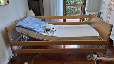 Letto ortopedico in legno con materasso normale e materasso antidecubito ad aria nuovo, con sponde abbattibili e movimento alto basso e testa-piedi regolabile elettricamente con telecomando. Prezzo non trattabile.