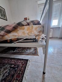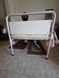 Letto ortopedico manuale, rialzabile sia dalla parte della testa che dalla parte dei piedi. perfettamente funzionante, con manovella originale. Usato pochissimo, praticamente nuovo. Rete ortopedica in metallo a doghe.