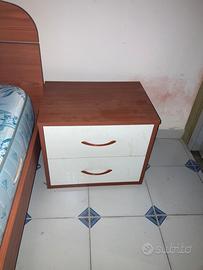Letto matrimoniale con doghe, materasso e due comodini