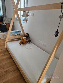Vendo Letto montessariano marca maisons du monde per bambini 70x140 cm in pino naturale+materasso e doghe + porta libri aggiunto successivamente da me medesimo. ottime condizioni vendo in quanto figlio cresciuto devo passare a letto standard