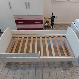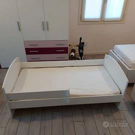 Letto singolo per bambini, con protezione anticaduta, con testiera tonda, cm 164x88h63, colore Bianco - 164x63x88 completo di materasso