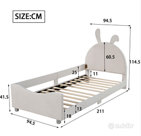 Letto per bambini letto imbottito 90 x 200 cm divano letto struttura letto in flanella letto morbido multifunzionale con schienale braccioli letto genitore-figlio letto giovani letto ospiti beige