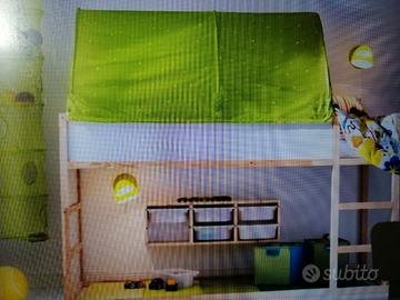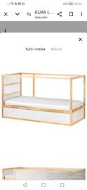 Vendo letto reversibile ikea modello Kura, colore bianco/pino, misura 90x200 cm. Nel prezzo è compresa la tenda verde come quella in foto. Non è compreso il materasso. Il letto è in ottime condizioni. Ritiro a mano, zona Centocelle.