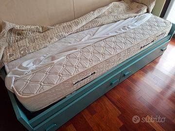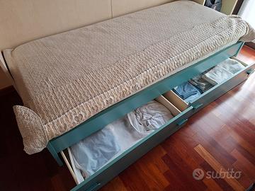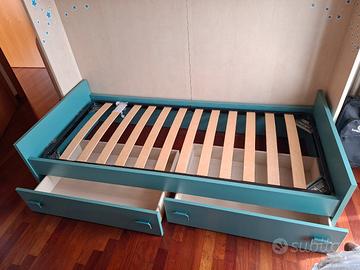 letto con doghe in legno misura 2 metri per 90 cm con 2 cassetti delle seguenti misure: larghezza 58,5 cm profondita' 87,5 cm e altezza 15 cm cad. come da foto vendo a 55 euro. condizioni ottime. ritiro in loco. il letto viene venduto senza materasso.