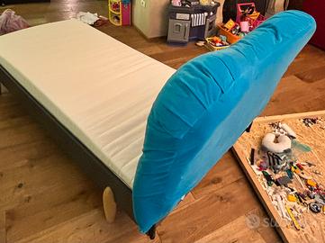 Letto singolo Ikea per cameretta, completo di materasso. Letto misure 205x95, altezza schienale 110. Materasso 90x195 spessore 10 cm. Doghe in legno.