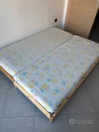 Due letti singoli Possono diventare letto matrimoniale Nuovi mai usati Materassi nuovi mai usati Vendo per cambio progetto camera bambini Misure in foto Materiale legno di pino Trasporto a carico dell’acquirente