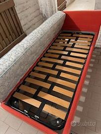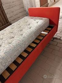 misure esterne 2,04 per 82, materasso 190 per 80; rivestimento/imbottitura in tela color salmone