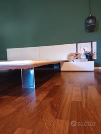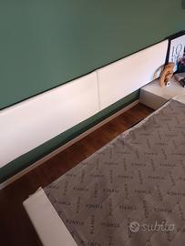 Vendo Letto marca Pianca Bianco, con testiera attaccata al muro e comodino bianco.