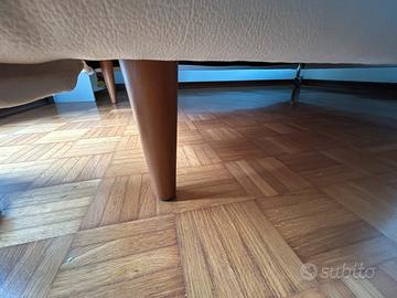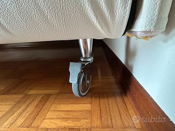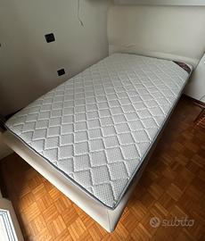 Struttura letto imbottita, ad una piazza e mezzo, compatibile con materasso 120x200 cm. Marca Gritti, color panna, rete a doghe. Con ruote che si possono sbloccare dalla parte della testiera per spostarlo agevolmente. Materasso non disponibile.