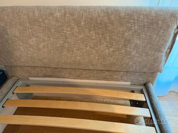 Vendo causa inutilizzo letto ad una piazza e mezza Twils, Nuovo, in tessuto Grigio alla moda e completamente sfoderabile e lavabile in lavatrice, completo di doghe, letto di qualità made in Italy