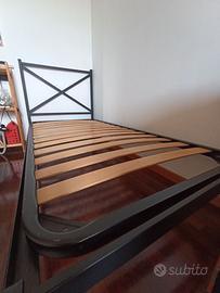 Vendo struttura letto di una piazza (90 x 1,90) in ferro battuto. Consiste di testiera, sponde laterali e pediera bassa (senza rete!). Montaggio facilissimo, senza viti. Molto robusto. Design semplice e moderno.
