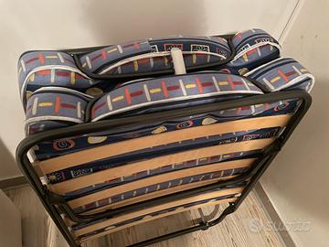 Letto pieghevole / brandina in condizioni pari al nuovo, usato pochissimo. Struttura solida in metallo, doghe in legno e materasso pulito, senza macchie né odori. Caratteristiche - Struttura pieghevole salvaspazio; - Doghe in legno robuste; - Materasso incluso, pulito e ben tenuto; - Ruote / impugnature per spostarlo facilmente; - Perfetto per ospiti, seconde case, stanze piccole. Condizioni: - Usato pochissimo; - Nessun difetto; - Nessuna deformazione del materasso; - Tenuto sempre in casa. NOTA: Viste le dimensioni e peso non è prevista la spedizione, solo ritiro a mano! Per ulteriori informazioni non esitare a contattarmi! ;)