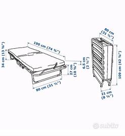Vendo per inutilizzo letto pieghevole (brandina) IKEA modello SANDVIKA, ideale come letto per ospiti o soluzione d'emergenza salvaspazio.