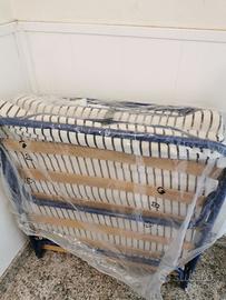 Letto pieghevole IKEA modello Sandvika, molto pratico per i viaggi, il campeggio o per tenerlo in qualsiasi angolo della casa per brevi visite. Il peso ridotto e la struttura a ruote lo rendono ancora più facile da trasportare ovunque.