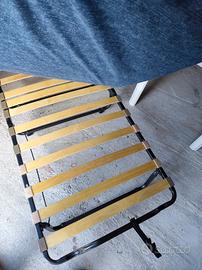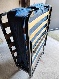 pieghevole con apertura delle staffe in automatico. doghe in legno. come da titolo acquistato per errore mai usato mai dormito sopra. con la sua copertura originale e le ruote per spostarlo.