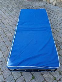 Comodo letto singolo con materassa. Utile in molte occasioni essendo "Salva Spazio", dotato di ruote girevoli per trasferimenti. Misure da chiuso: altezza cm. 105, profondità cm.32, larghezza cm.80. Misure materasso cm. 80x180.
