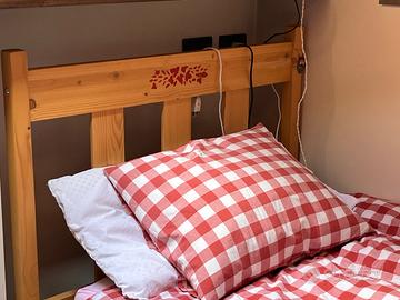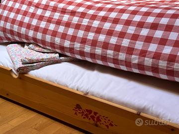 Letto in abete verniciato con vernice ad acqua con doghe, letto sotto estraibile completi di materassi di lana in buonissimo stato Letto 210x97x96 Letto estraibile 200x97