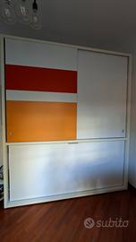 Letto a scomparsa con armadio ante scorrevoli Clei modello POPPIPONTE laminato bianco h. 256 cm profondità letto chiuso 62 cm 129 cm letto aperto Smontaggio e trasporto a carico dell acquirente