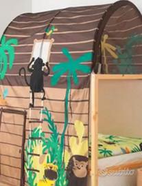 Vendo letto reversibile kura, usato ma in buone condizioni. Pannelli laterali bicolore si possono usare dal lato bianco o dal lato blu. Vendo completo di materasso, due tunnel, uno fucsia e uno stile giungla con copripiumino e fodera in coordinato.