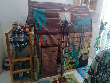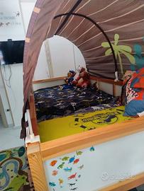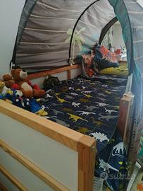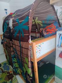 Vendo letto Ikea per cameretta reversibile bianco/pino, accesso tramite gradini, completo di materasso e tenda