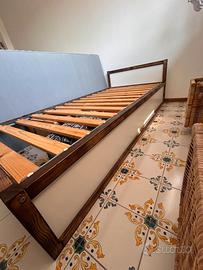 Vendo letto reversibile ikea trasformato in letto basso, dipinto con mordente color noce, molto bello e stabile, ho ricavato inoltre un vano sottostante dove inserire oggetti o altro da stoccare, vendo a richiesta anche materasso ikea usato una settimana da mia figlia, praticamente nuovo. Il letto ora è smontato ma visibile a Roma Zona Gemelli.