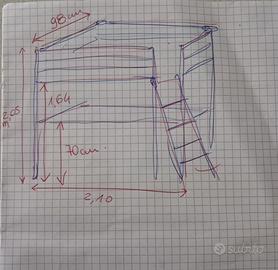 Letto rialzato con scrivania, come da foto, già parzialmente smontato. Ritiro in loco. No materasso. No spedizione.