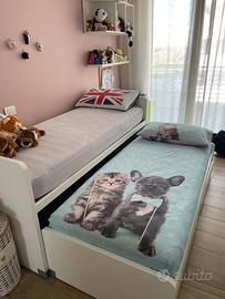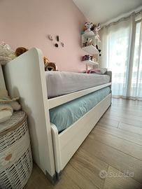 Due letti sovrapposti/scorrevoli marca Nidi con doghe, entrambi su ruote con fermi + due materassi. Ben tenuti, misure 200x90 cm; già smontato. Zona San Donà di Piave(VE). Trasporto a carico dell’acquirente. Compreso nel prezzo mobile tre cassetti più anta stessa marca letto(105x60x66h) con ruote bloccabili.