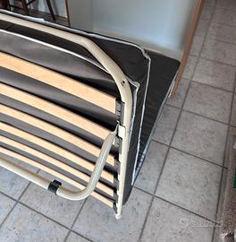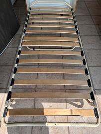 Il mobile racchiude un letto singolo con doghe in legno e materassino da 10cm circa. Il letto è richiudibile, con rotelle quindi comodo da trasportare. Il mobile è funzionale perche fa anche arredamento. Prezzo trattabile