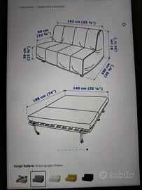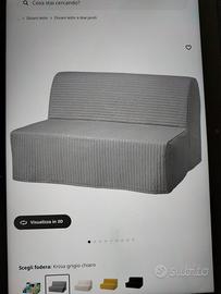 Letto/divano ikea modello LYCKSELE LÖVÅS una piazza e mezza acquistato un anno fa in ottime condizioni, comprensivo di fodera di copertura Knisia grigio chiaro (allego foto dal sito ikea).