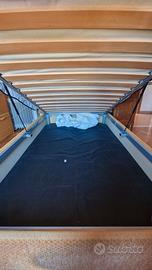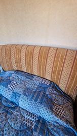 Letto 1 piazza e 1/2 con contenitore e rete a doghe. Materasso non fornito. Color senape e disegni bordeaux. Perfetto . Smontaggio e trasporto a carico dell'acquirente. Disponibile da fine maggio