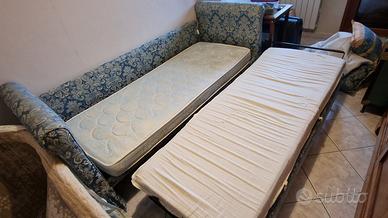 Splendido letto utilizzato poche volte per ospiti. Due letti di cui uno estraibile. Fornito di due materassi, un topper, vari cuscini e piumino. Smontaggio e trasporto a carico dell'acquirente
