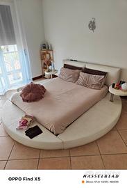 letto in ecopelle bianco in ottime condizioni a terra lunghezza totale da schienale a bordo letto 2.70 larghezza totale da sponda destra a sinistra 2.50
