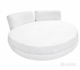 •Letto rotondo in pelle bianca, rivestimento integro su tutto il perimetro