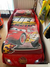 Vendo letto da bambino come in foto di Saetta McQueen originale fatto in MDF (legno resistente) e plastica compreso di comodissimo materasso rigido in schiuma e rete con doghe in legno.