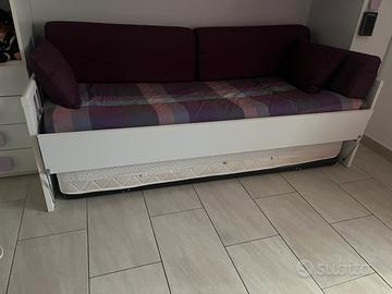 Letto salvaspazio per camerette e armadi ponte , compreso di rete e doghe e materassi e secondo letto a scomparsa . Ottime condizioni , prezzo 150 euro. Misure 90cm x 2 metri