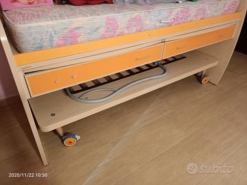 Vendesi Letto salvaspazio Moretti Compact dotato di due letti (uno fisso e uno a scomparsa), due piani scrivania estraibili, due cassetti e scala a pioli. Prezzo trattabile.