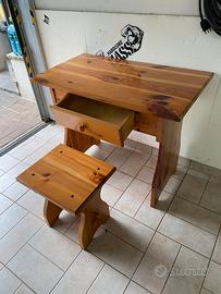 Camera da letto in legno massello Dolomite con nodi a vista colore miele adatta per case in montagna rustico completa di : -letto singolo 89×202,5 h 31 con comodino 59×32 200€ - Scrivania 100x 56 h 80 con sgabello 250
