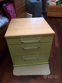 Letto singolo 1 piazza completo di rete a doghe in legno, materasso e comodino.